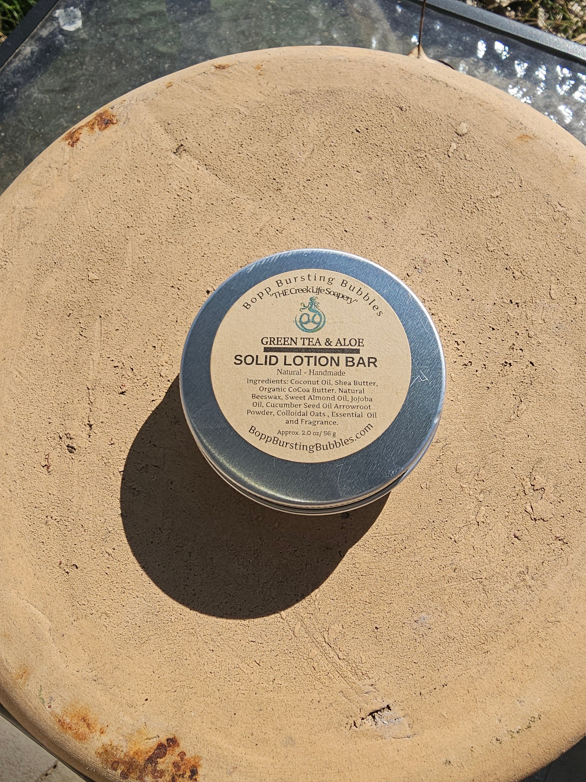 - Size: 2 oz solid lotion bar in reusable tin